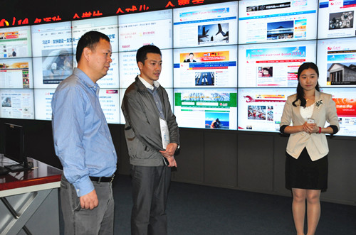 從新媒體播控中心,到網(wǎng)絡(luò)演播室;從文化長廊,到采編部門……每到一處,冉東認(rèn)真聽取人民網(wǎng)相關(guān)負(fù)責(zé)人的介紹,詳細(xì)了解人民網(wǎng)自1997年創(chuàng)辦以來的發(fā)展?fàn)顩r。對人民網(wǎng)在宣傳國家戰(zhàn)略、報(bào)道地方經(jīng)濟(jì)發(fā)展、傳播正能量等方面的舉措和成果,冉東一行贊不絕口。