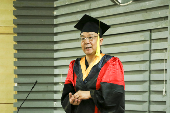 首先,北京郵電大學(xué)學(xué)術(shù)委員會主席張英海教授為學(xué)位授予儀式致辭。他對此次圓滿完成學(xué)業(yè)并獲得學(xué)位的EMBA、MBA、MEM、MPM學(xué)員表示熱烈的祝賀,同時對辛勤奉獻(xiàn)的教師們表示衷心的感謝,對支持同學(xué)們的親屬、父母表示崇高敬意。張英海教授表示,當(dāng)同學(xué)們走向課堂的時候,就已經(jīng)承擔(dān)起歷史責(zé)任,在父母、家庭、社會的責(zé)任之外,又開始了新的追求、新的夢想。他說,提出實(shí)現(xiàn)中國夢的時候,我們是要實(shí)現(xiàn)一個民族的偉大復(fù)興,實(shí)現(xiàn)我們的中國夢。這幾年祖國的科技事業(yè)、國防事業(yè)、社會主義建設(shè)事業(yè)突飛猛進(jìn),這在無形中就將祖國的中國夢、社會主義的強(qiáng)大等歷史重任放在我們肩上。所以在祝賀的同時,更感受到同學(xué)們將來面對社會、家庭的責(zé)任。最后,張英海教授以習(xí)近平主席的“不忘初心”結(jié)束話題:不忘初心,不忘自己的責(zé)任;不忘初心,不忘自己的追求;不忘初心,不忘記并且勇敢擔(dān)負(fù)起今后家庭幸福、父母安康、祖國強(qiáng)大的光榮的責(zé)任!