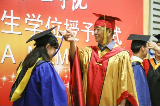 張英海主席、金永生院長、曾劍秋教授為畢業(yè)生授予學(xué)位證書,并撥正流蘇