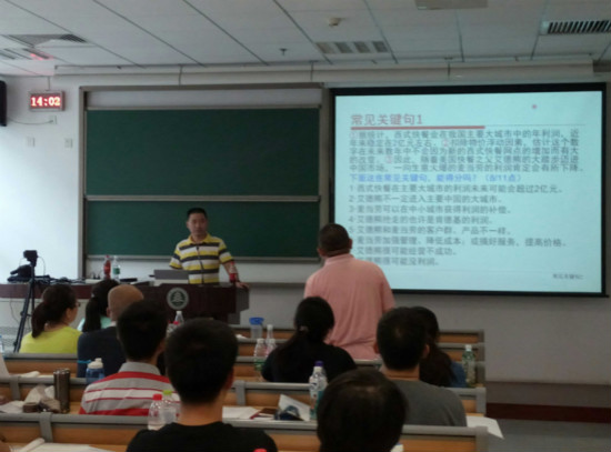 2016年8月6日9:00-16:30,太奇MBA北京林業(yè)大學(xué)校區(qū)學(xué)研中心A0304教室陳君華老師中文寫作課進行時。中文寫作在管理類聯(lián)考中分值占比65分,太奇教育在系統(tǒng)班階段安排的寫作課共兩次。盡管分值高,課時相對較少,但真正的名師不會用課時量來要求學(xué)生。作為MBA寫作輔導(dǎo)界的一線專家,陳君華老師結(jié)合日常生活實例剖析論證有效性分析這類文章的重要性和相應(yīng)的解決思路,把握本質(zhì),透析規(guī)則,分享思想,啟迪智慧,通過課堂提問調(diào)動更多同學(xué)積極參與,引導(dǎo)同學(xué)們課間小組討論,學(xué)員反饋是字字珠璣,閃耀著真知灼見。