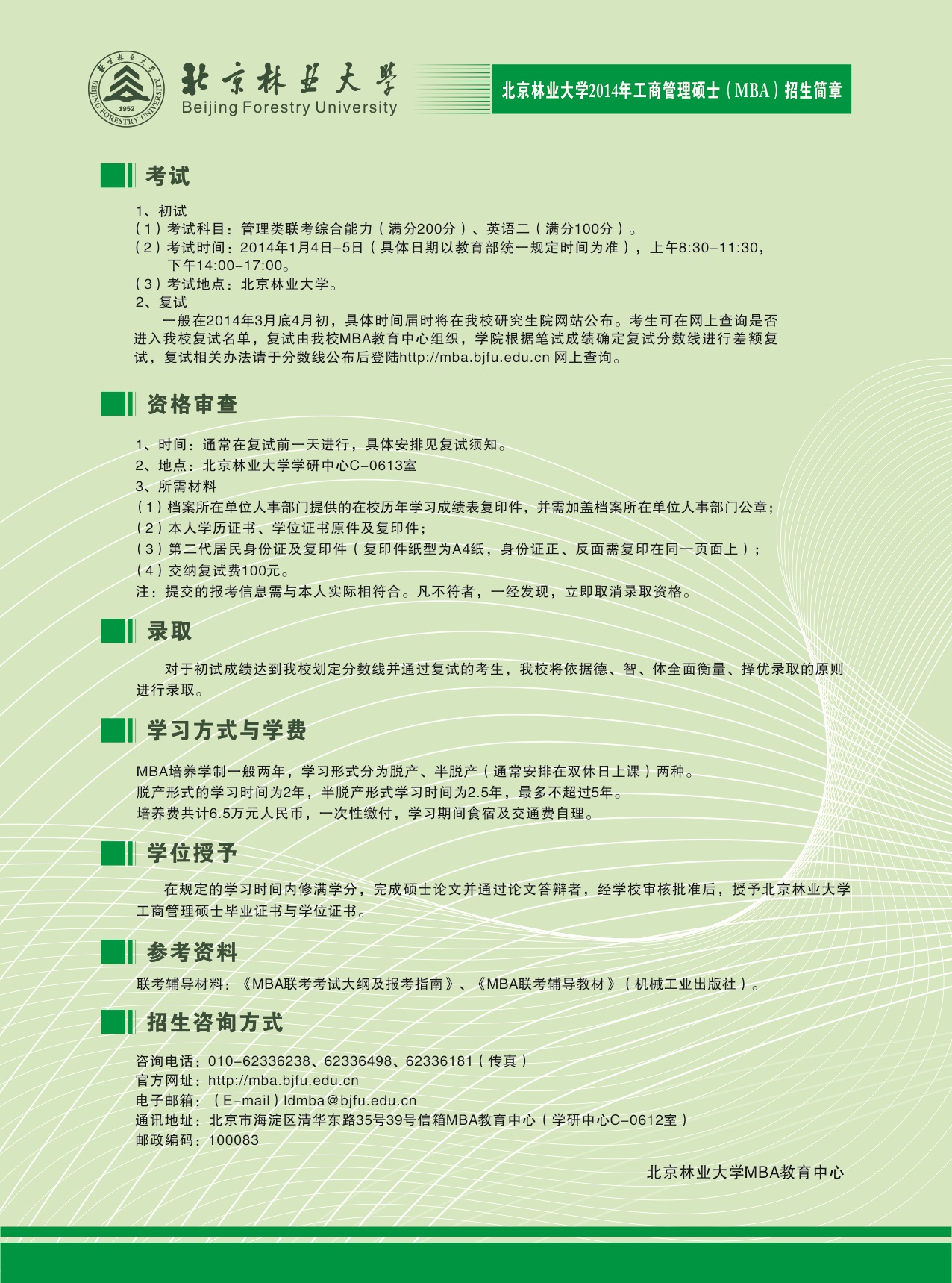 2014年北京林業(yè)大學(xué)工商管理碩士招生簡章