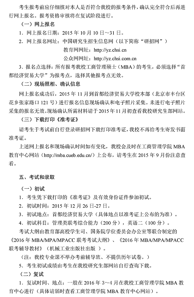 首都經(jīng)濟(jì)貿(mào)易大學(xué)2016年MBA招生簡(jiǎn)章