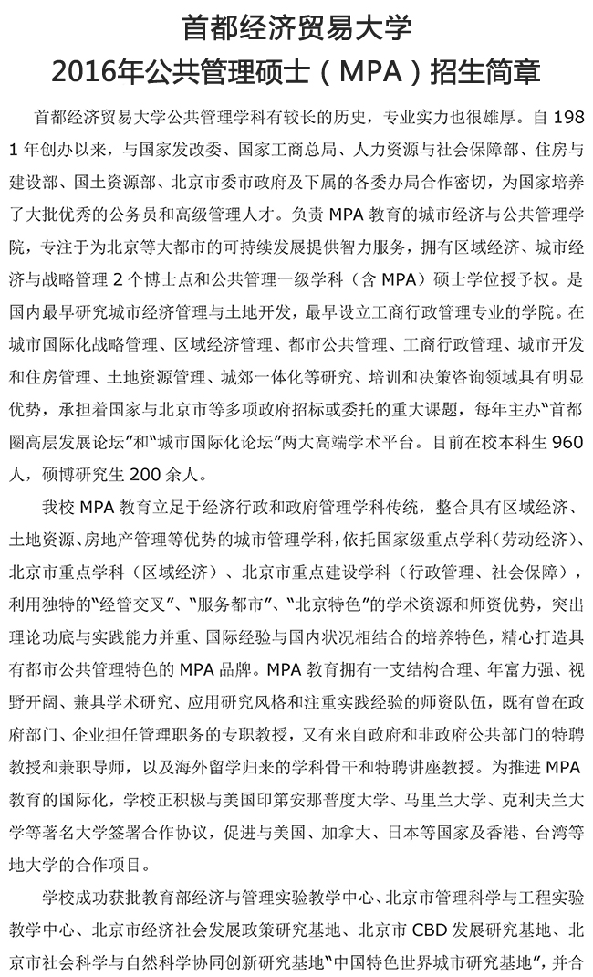 首都經(jīng)濟(jì)貿(mào)易大學(xué)公共管理碩士(MPA)招生簡(jiǎn)章