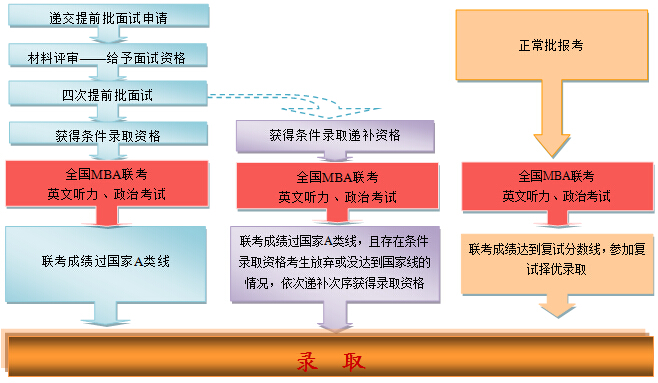 登錄中國人民大學(xué)商學(xué)院MBA項目中心網(wǎng)站“考生服務(wù)系統(tǒng)”,按照規(guī)定時間提交網(wǎng)上申請及書面申請材料,學(xué)院將組織專家評審申請材料,擇優(yōu)給予提前面試資格并組織面試。面試后獲得條件錄取資格和條件錄取遞補資格的考生需參加2016年1月舉行的全國聯(lián)考。