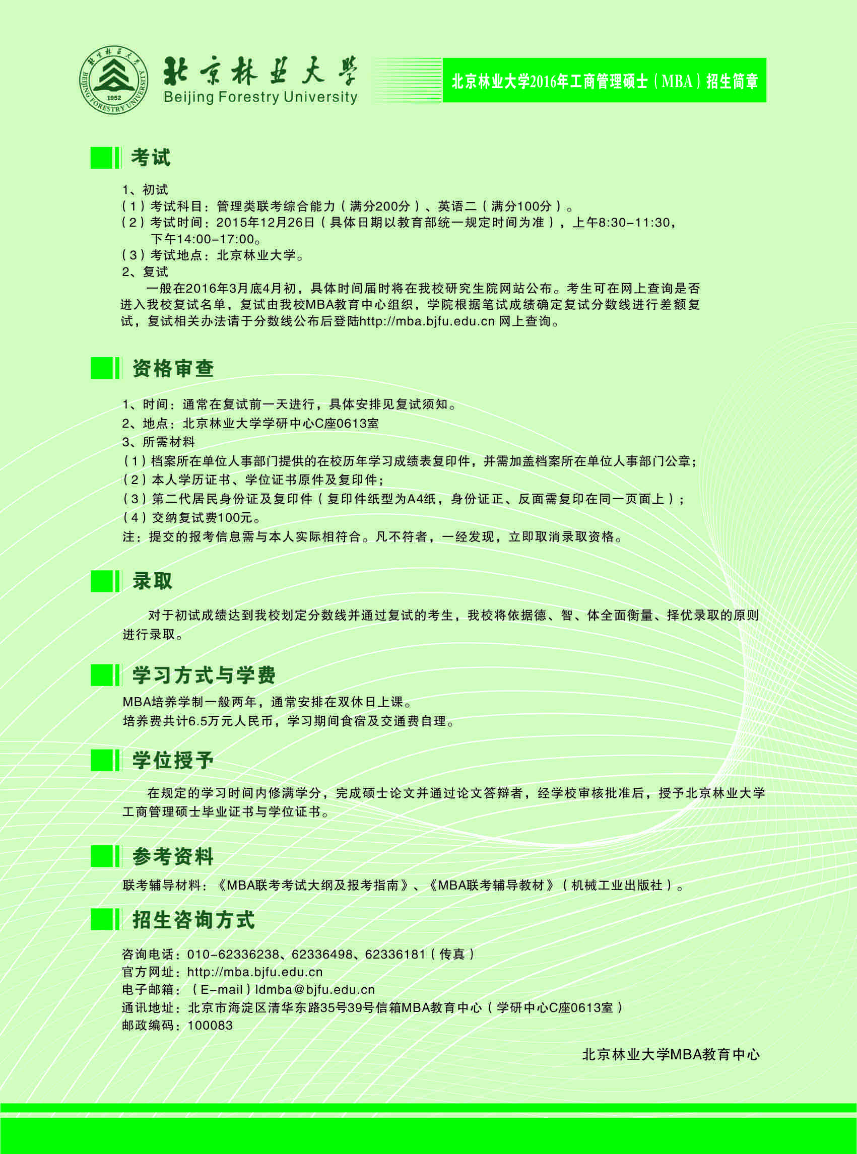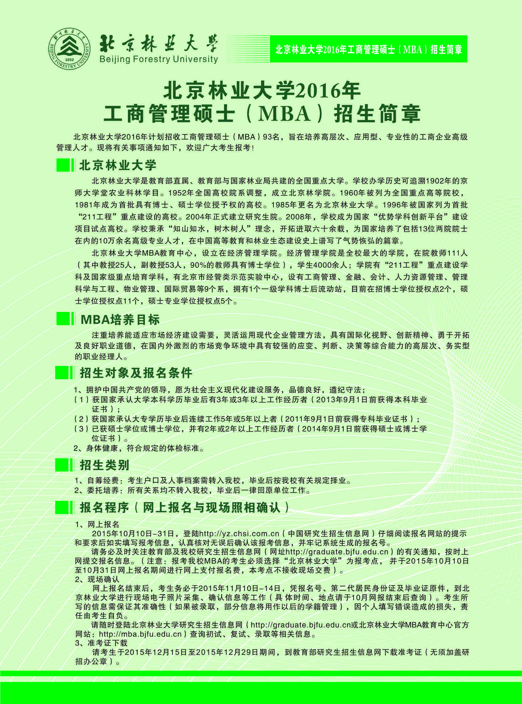 北京林業(yè)大學(xué)2016年工商管理碩士(MBA)招生簡(jiǎn)章