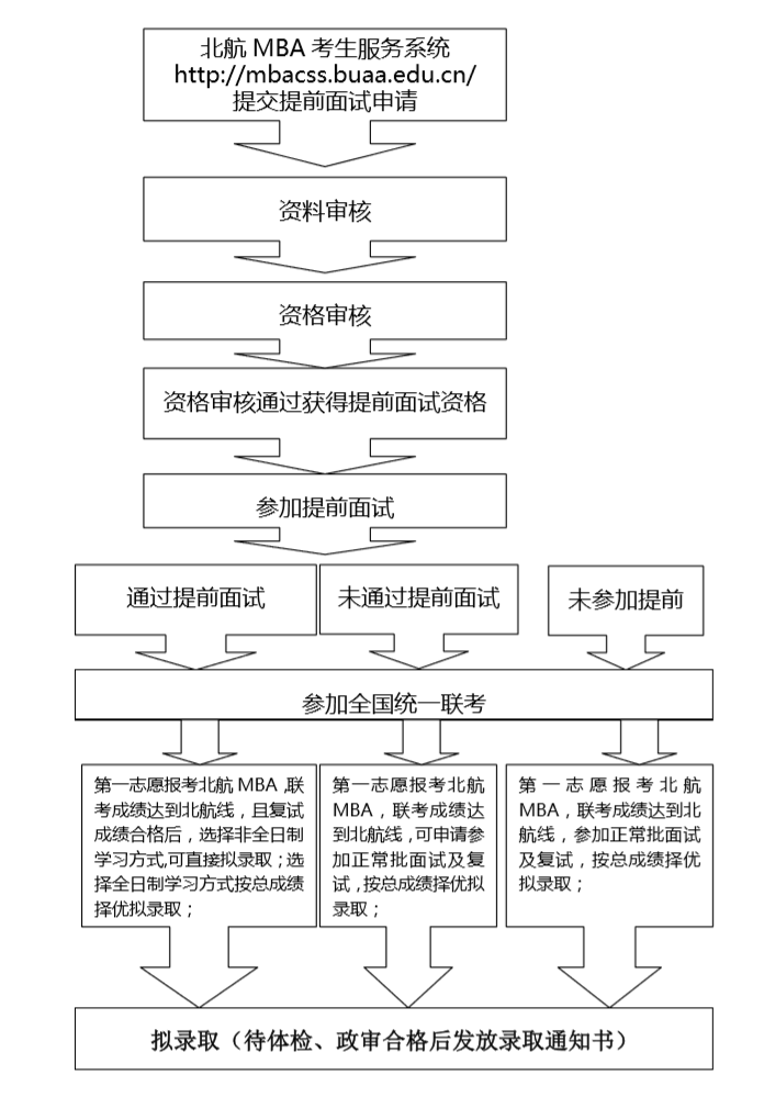通過(guò)考生:第一志愿報(bào)考北航 MBA,聯(lián)考成績(jī)達(dá)到北航線,復(fù)試成績(jī)合格,選