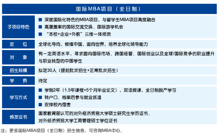 管理類碩士官方備考群,考生互動(dòng),擇校評(píng)估,真題討論 點(diǎn)擊加入備考群>>對(duì)外經(jīng)濟(jì)貿(mào)易大學(xué)工商管理碩士(MBA)2019年招生信息