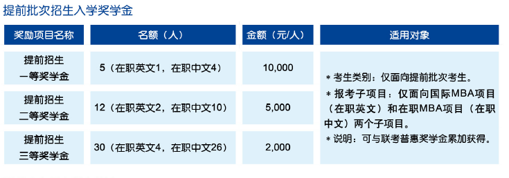 “MBA提前批次招生”將安排于2018年5月至11月底結(jié)束。對(duì)于準(zhǔn)備報(bào)考各個(gè)項(xiàng)目的考生,我們將從全部招生名額中安排較多比例的名額提供給提前批次招生批次的考生,以使優(yōu)秀的考生能選擇更優(yōu)先的渠道獲得錄取的機(jī)會(huì)。