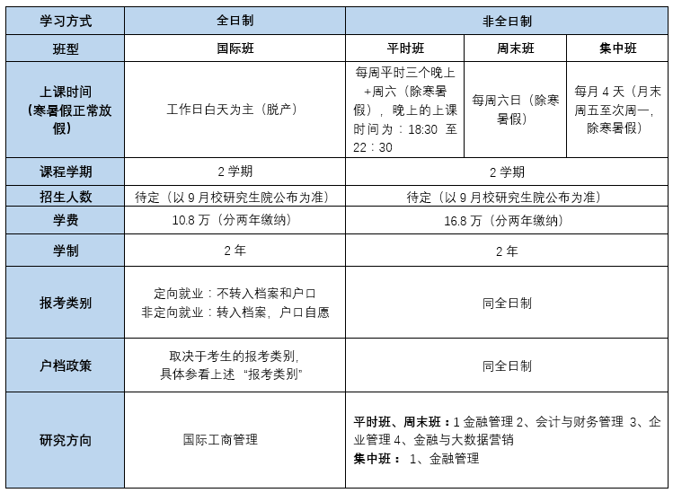 4.中財MBA的全日制和非全日制有何主要異同點?