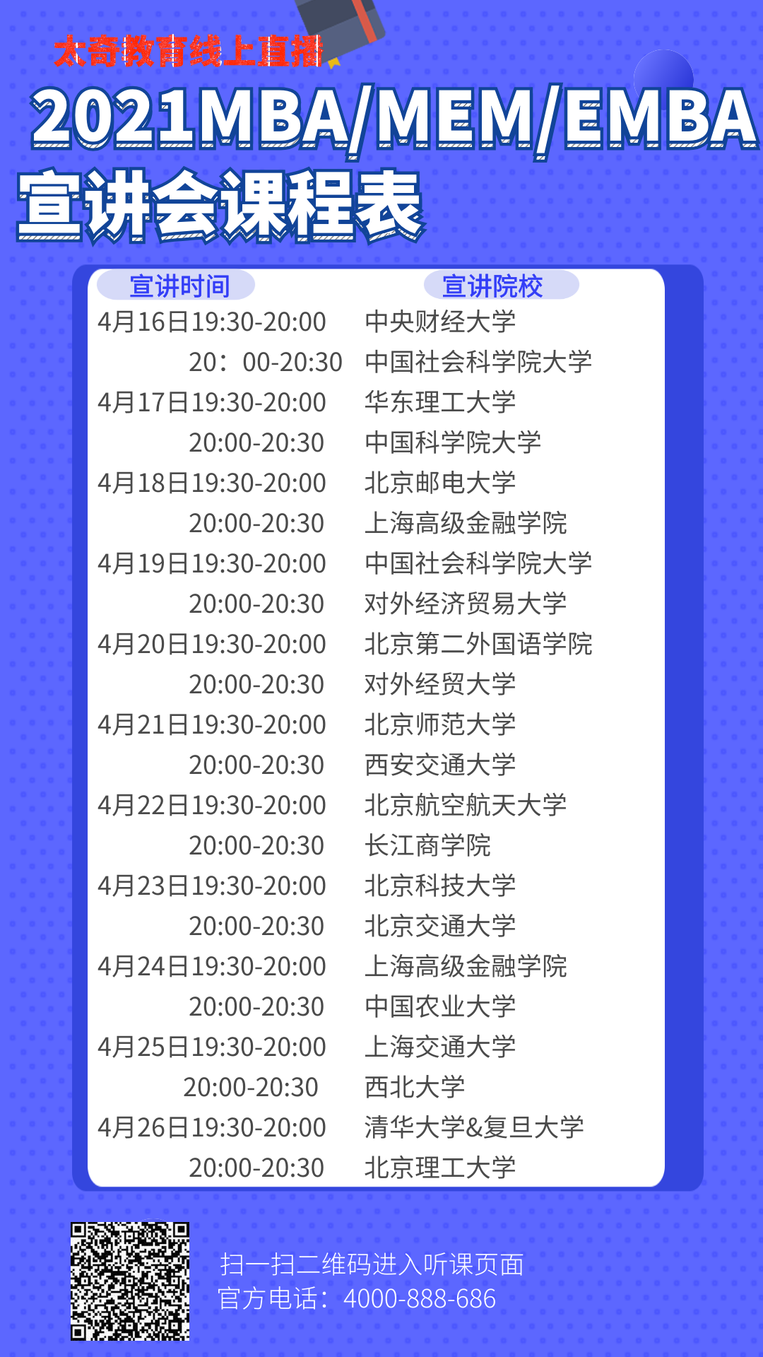 2021年全國MBA/MEM/EMBA院校宣講會課程表