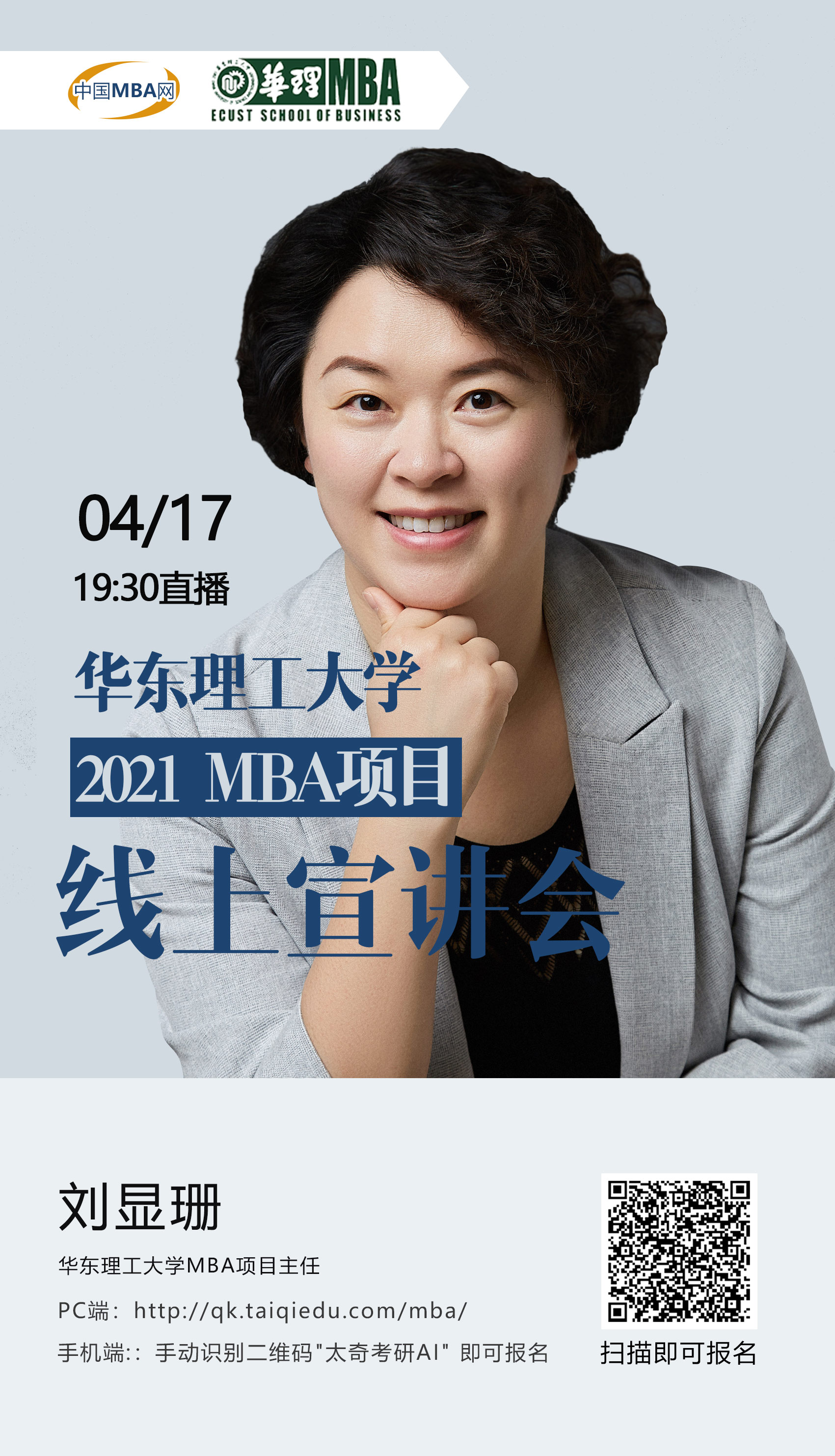 為了讓2021級考生能夠及時的了解我校,2021年的招生政策及動態(tài),華東理工大學(xué)MBA項(xiàng)目應(yīng)中國MBA網(wǎng)的邀請出席“2021全國商學(xué)院MBA/EMBA/MEM教育巡展暨招生政策發(fā)布會”!