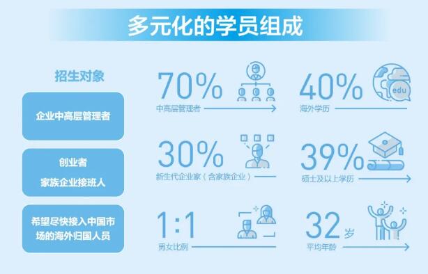 A:來自創(chuàng)新創(chuàng)業(yè)、金融與投資、文化產(chǎn)業(yè)、智能制造、大健康、高新科技行業(yè),管理經(jīng)驗(yàn)不少于9年的中高層管理者。