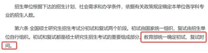這則好消息就是教育部《2025全國碩士研究生招生工作管理規(guī)定》中的第六條,也是非常重要的一條:教育部統(tǒng)一確定初試、復(fù)試時間。