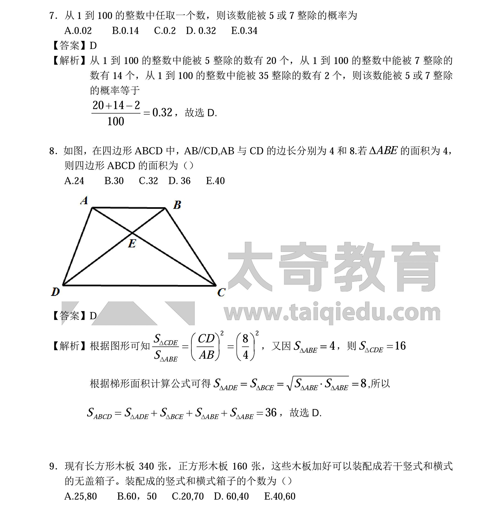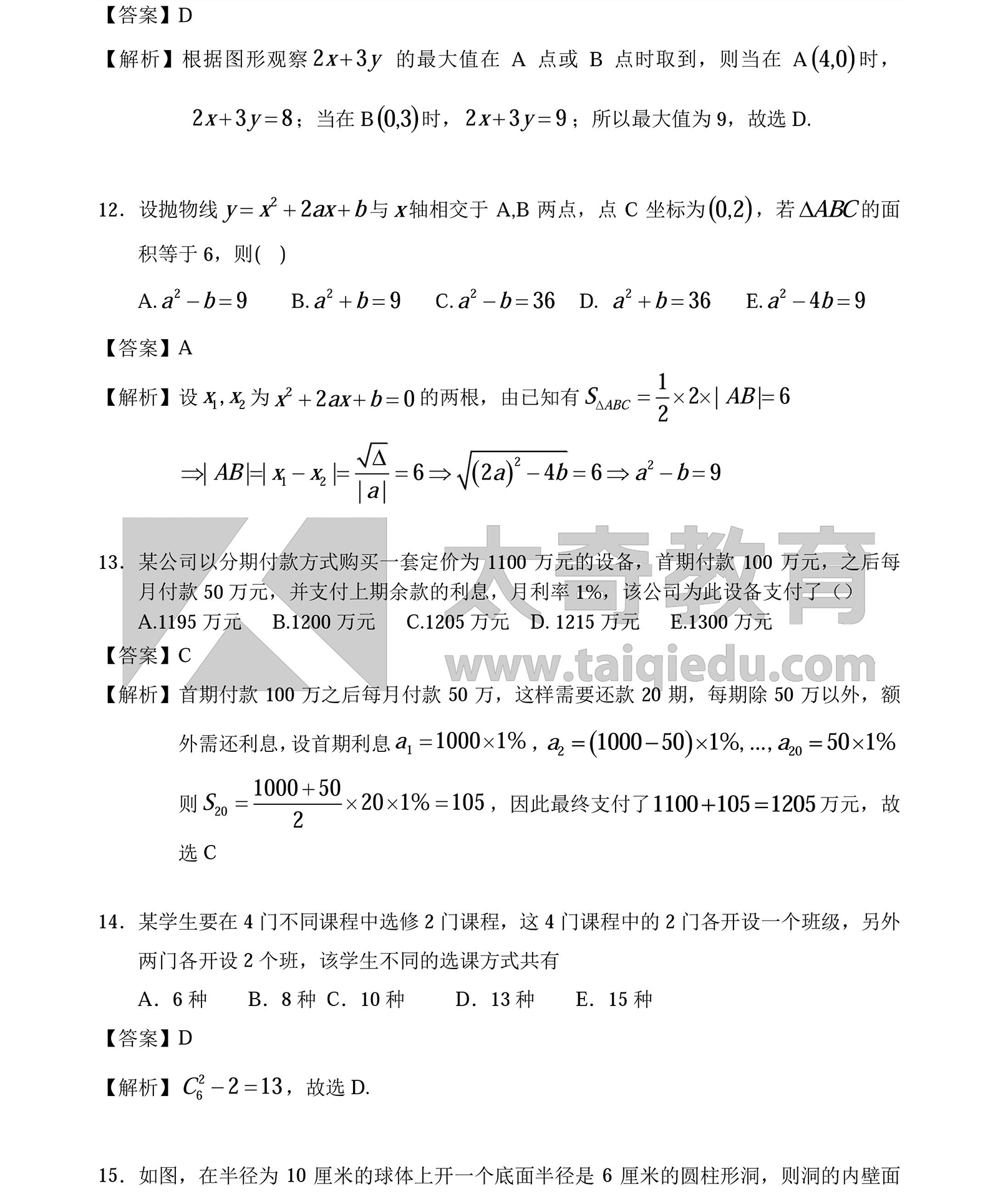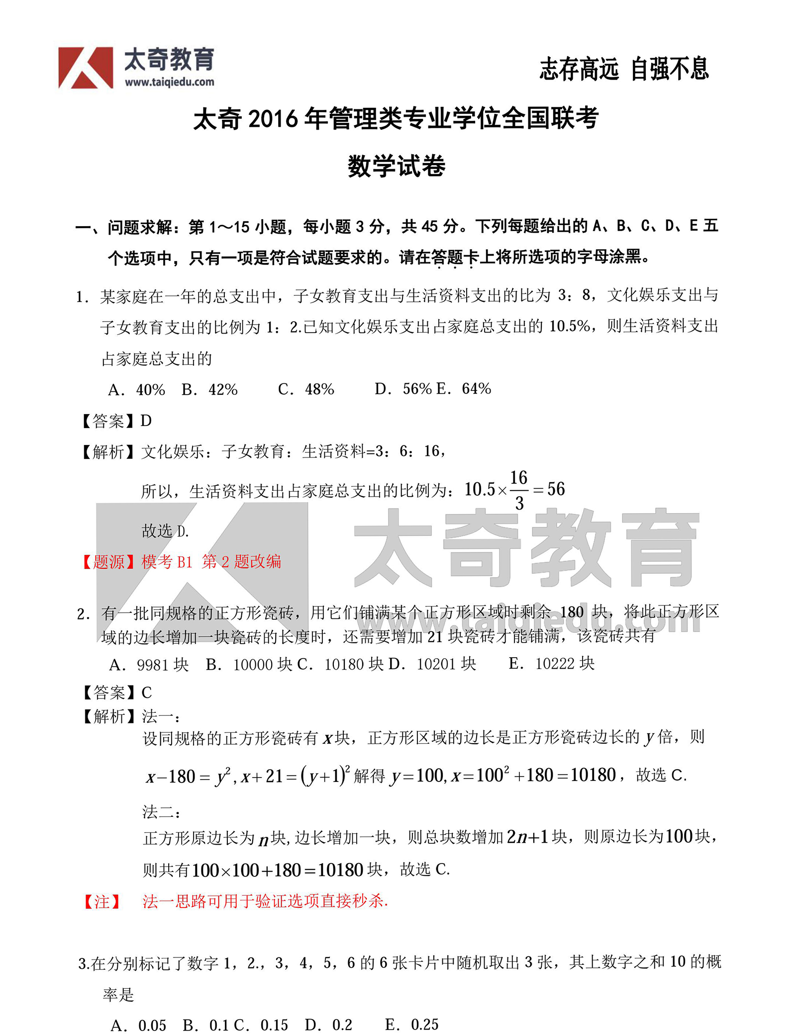 2016MBA管理類聯(lián)考數(shù)學(xué)真題答案:問題求解