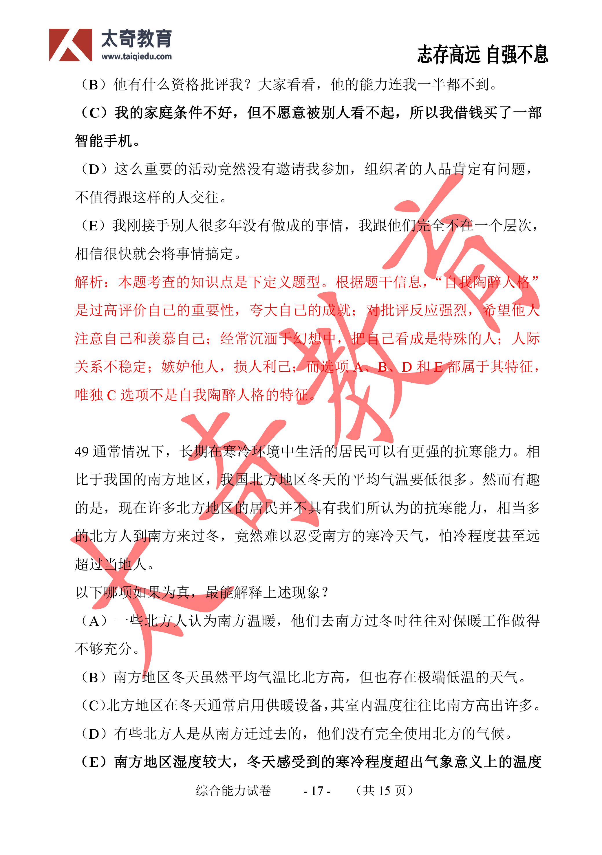 2017年MBA聯(lián)考數(shù)學(xué)真題參考答案:問題求解