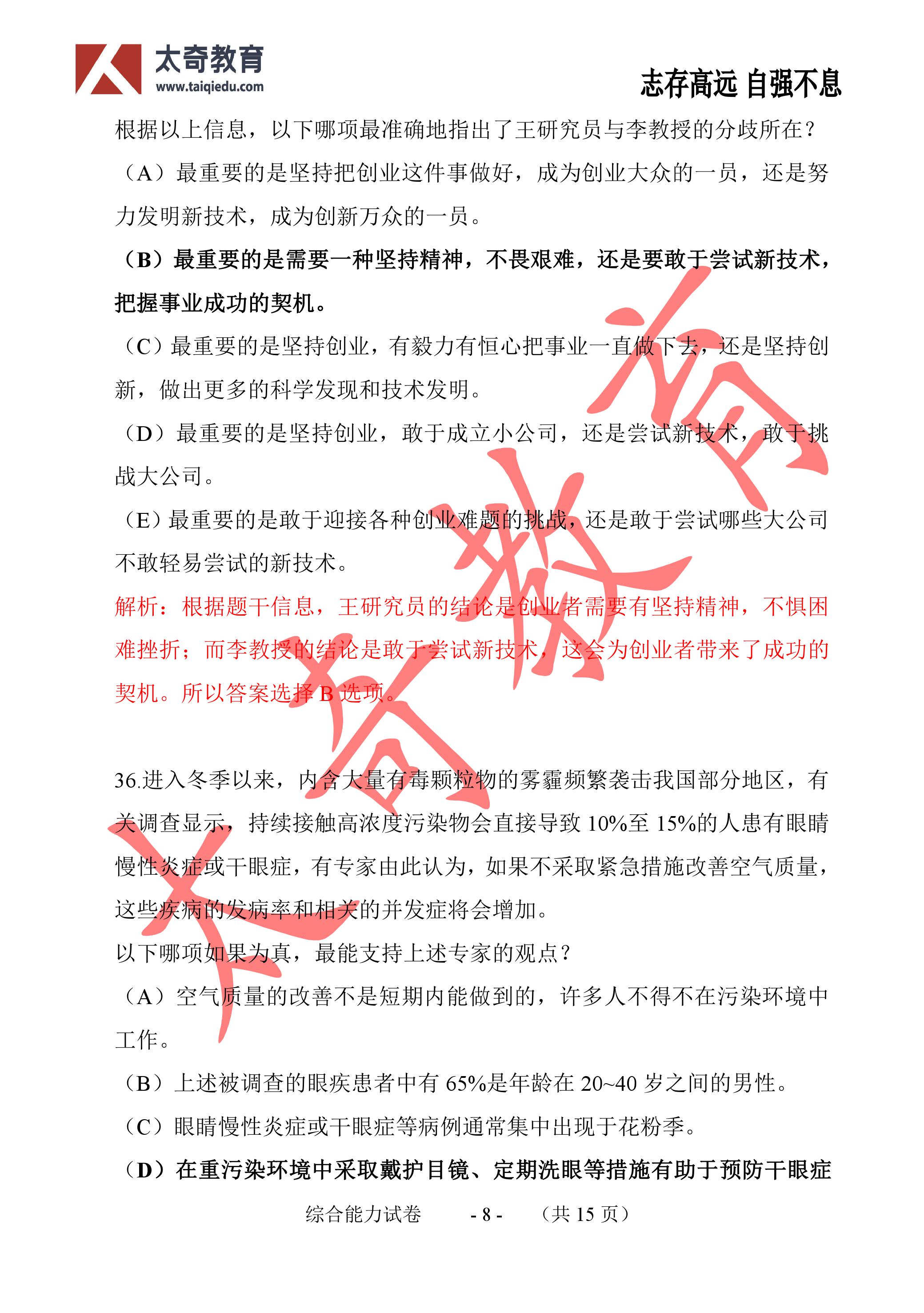 2017年MBA管理類聯(lián)考邏輯真題參考答案