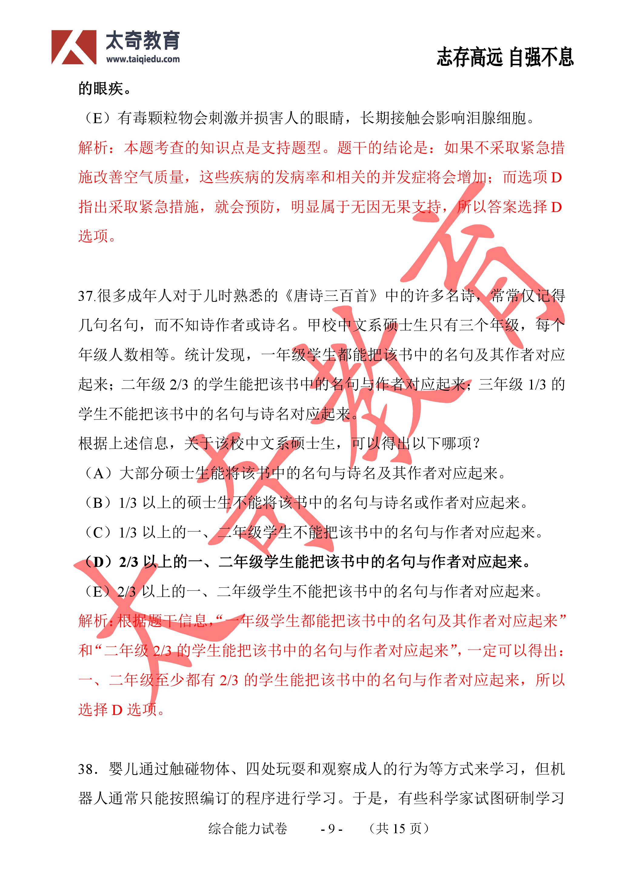 2017年MBA聯(lián)考數(shù)學(xué)真題參考答案:問題求解