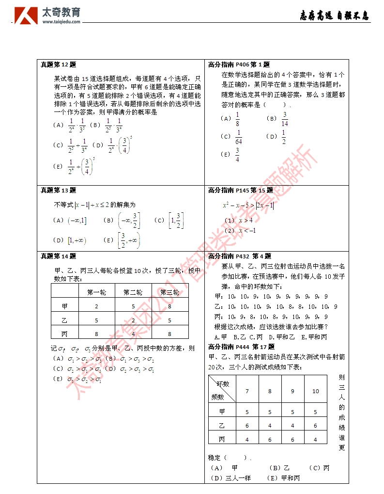 祝賀太奇教育2017管理類聯(lián)考數(shù)學直接命中66分(4)