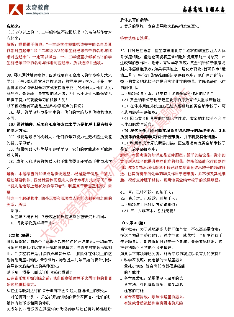 祝賀太奇教育2017管理類(lèi)聯(lián)考邏輯直接命中46分(4)