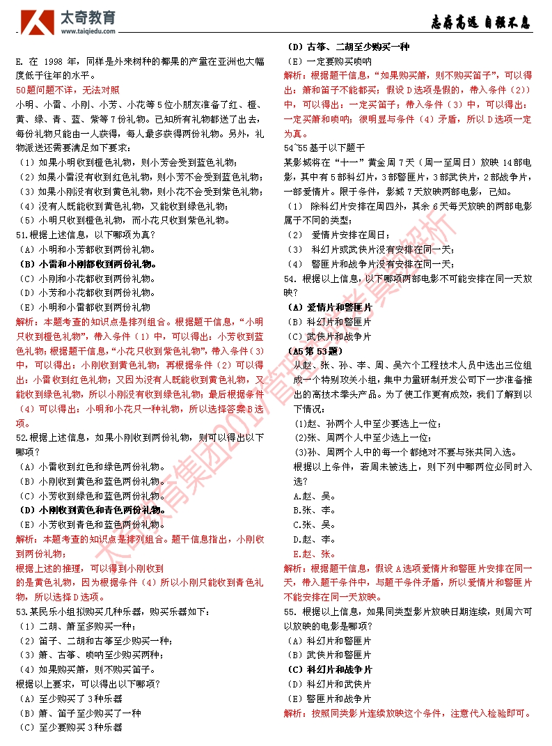 祝賀太奇教育2017管理類聯(lián)考邏輯直接命中46分(9)
