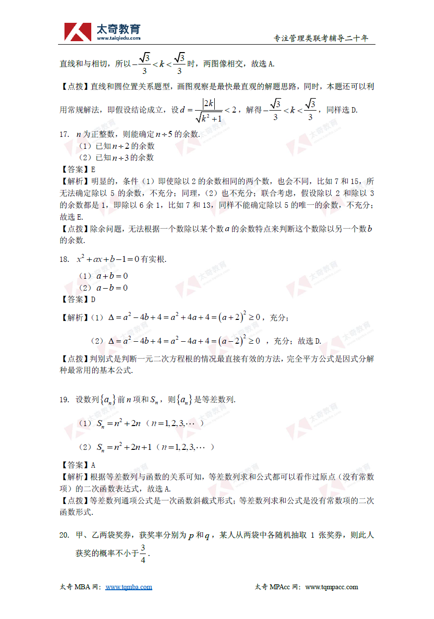2019年管理類聯(lián)考數(shù)學真題+解析(太奇官方版)(7)