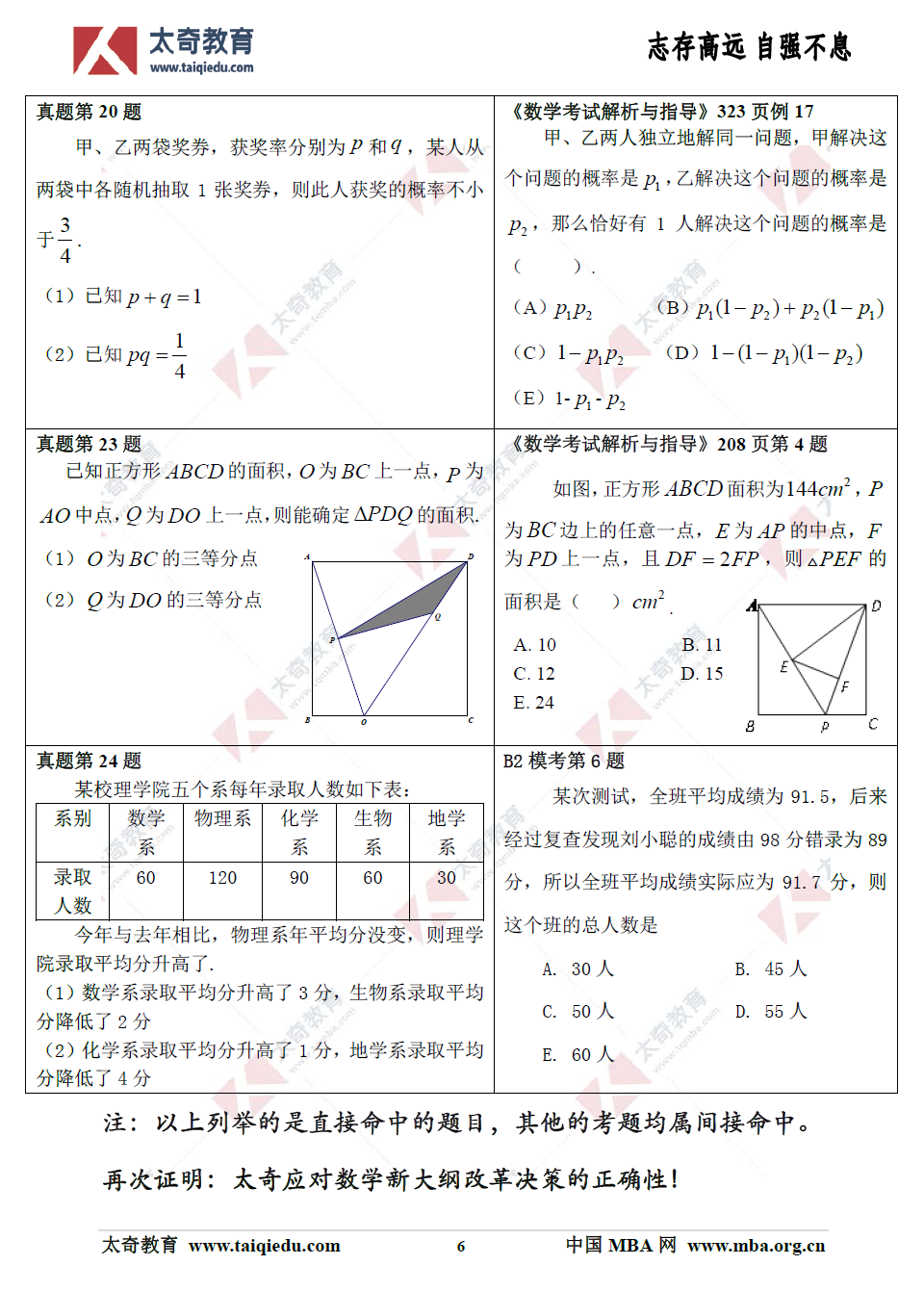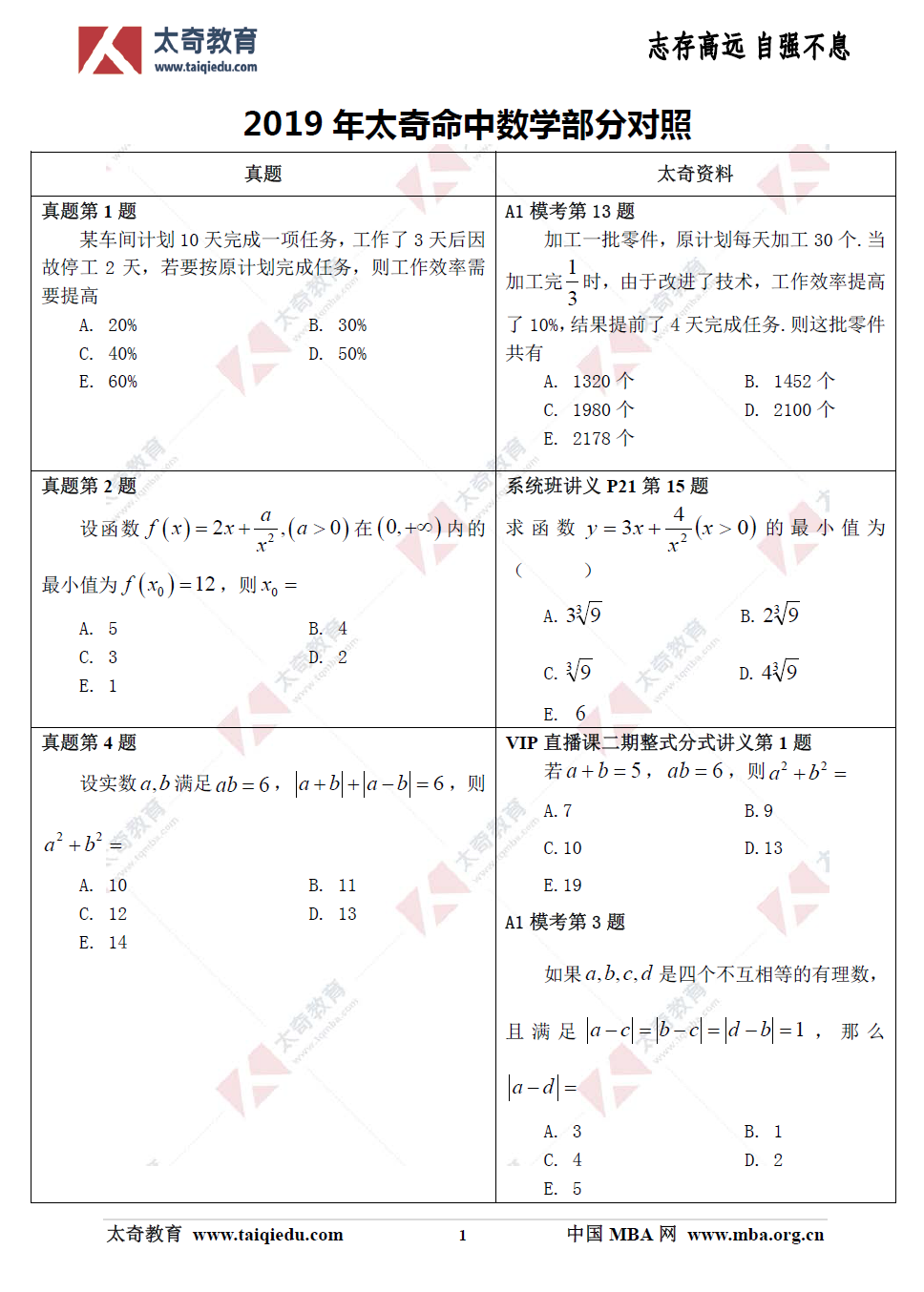 ,附《太奇2019年管理類聯(lián)考數(shù)學(xué)真題命中對(duì)照》!再次證明:太奇應(yīng)對(duì)數(shù)學(xué)新大綱改革決策的正確性!比命中考題更為重要的是:太奇在對(duì)每次??嫉闹R(shí)點(diǎn)、考點(diǎn),尤其在對(duì)命題方向的把握上極其精準(zhǔn)。