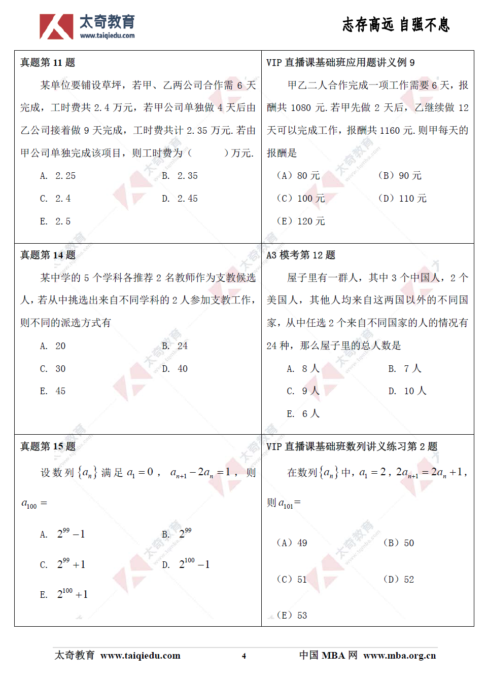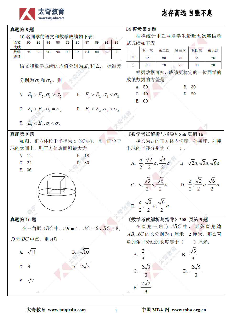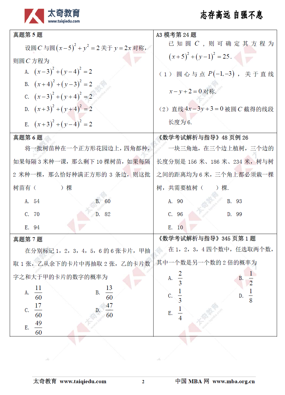 2019年管理類聯(lián)考數(shù)學(xué)真題+解析(太奇官方版)