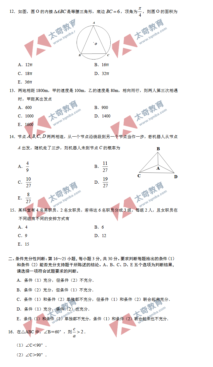 2020年MBA/MEM管理類聯(lián)考數(shù)學(xué)真題(3)