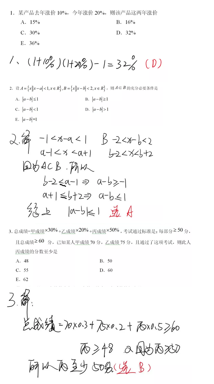 2020年MBA/MEM管理類聯(lián)考數(shù)學(xué)真題答案: