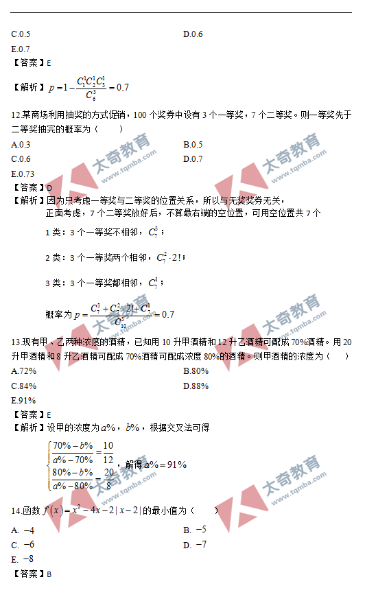 2021年MBA管理類聯(lián)考數(shù)學(xué)真題答案及解析(4)
