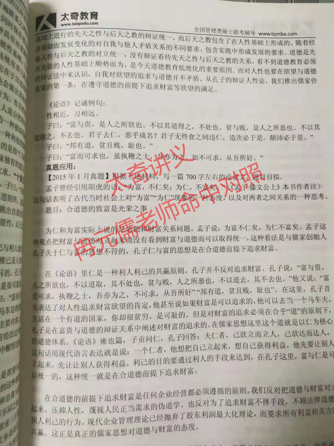 太奇教育集團(tuán)董事長(zhǎng),北京大學(xué)博士,儒學(xué)研究專家,太奇寫作輔導(dǎo)老師,采取辯證框架教學(xué)法,以辯證思維與中華智慧相結(jié)合,以企業(yè)經(jīng)營(yíng)者的高度幫助提高考生管理思維能力和對(duì)中華智慧的了解,高屋建瓴的掌握聯(lián)考寫作要求,快速寫出聯(lián)考高分論說文。