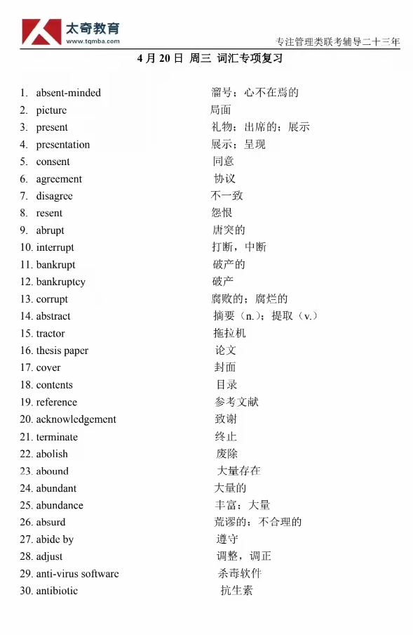4月20日詞匯專項(xiàng)練習(xí)