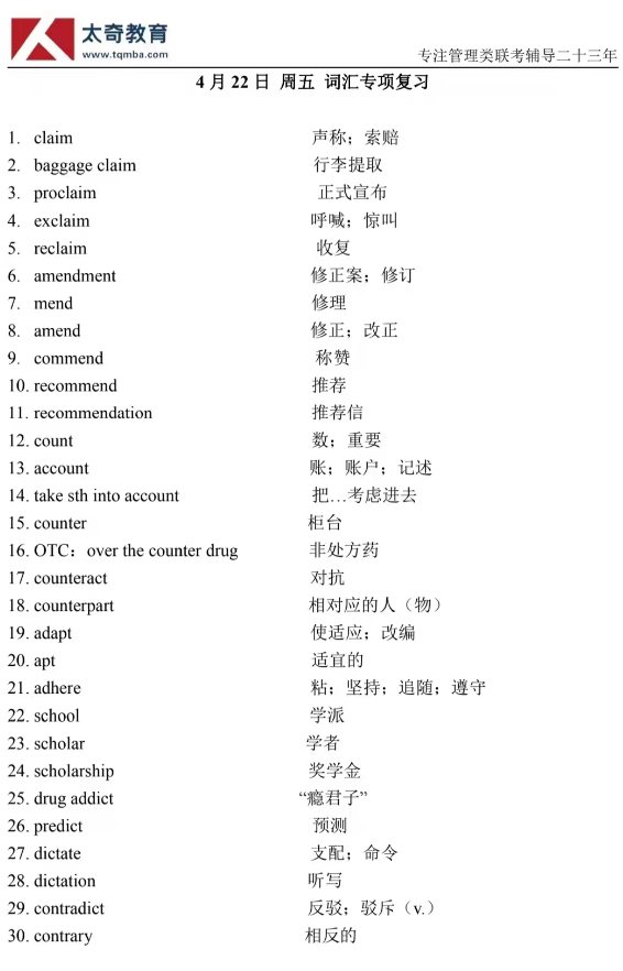 4月22日詞匯專項(xiàng)練習(xí)