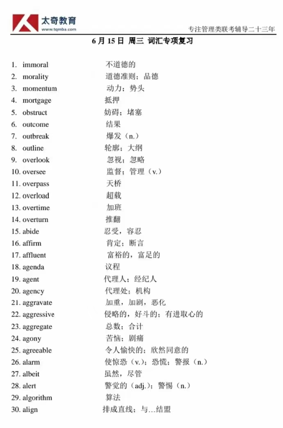 6月15日詞匯專項(xiàng)練習(xí)