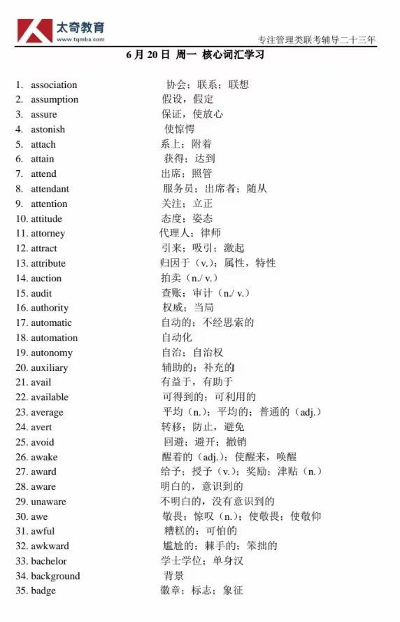 6月20日詞匯專項練習